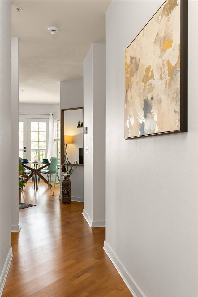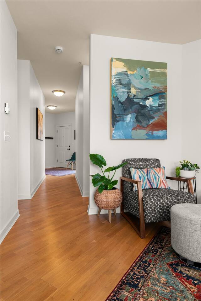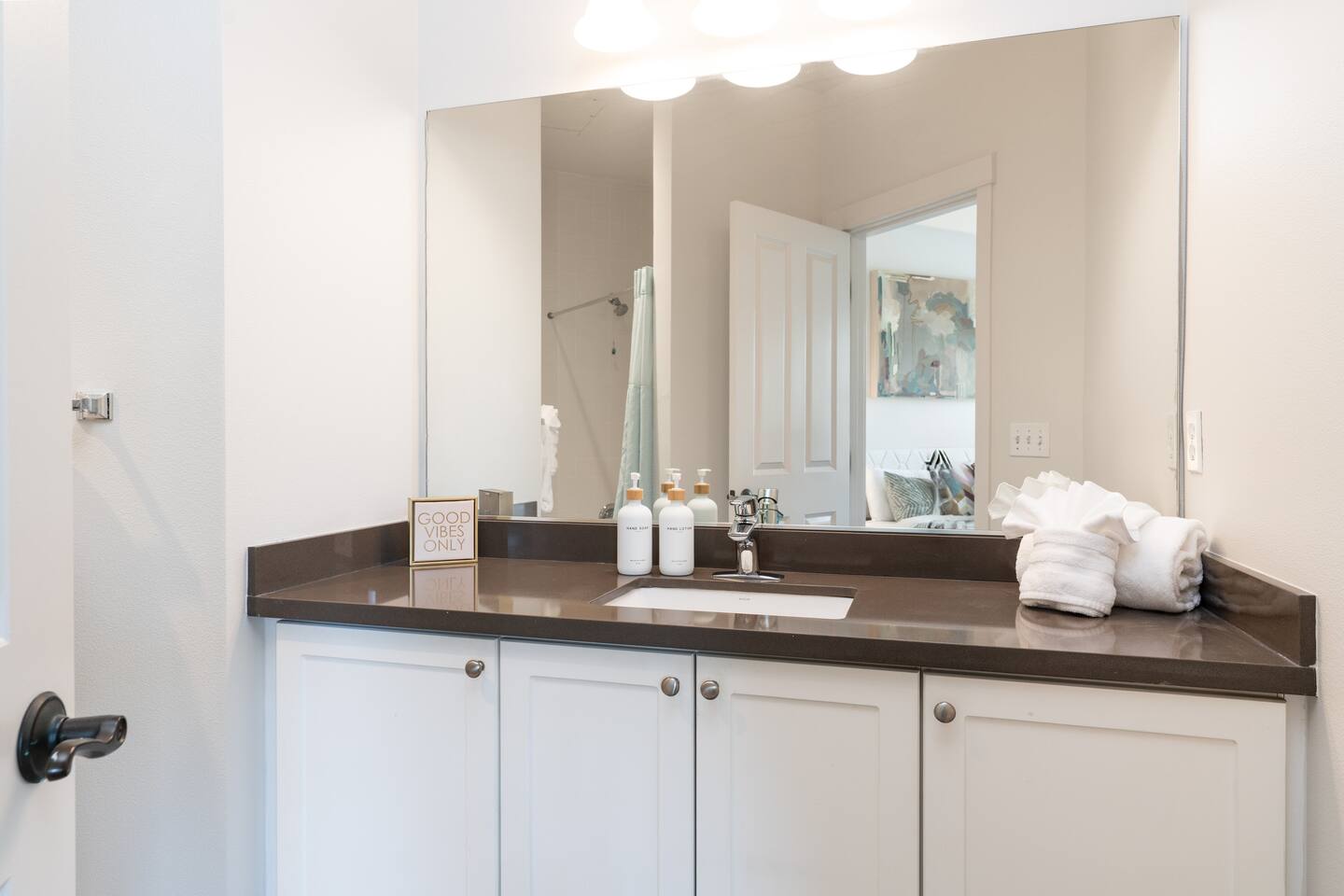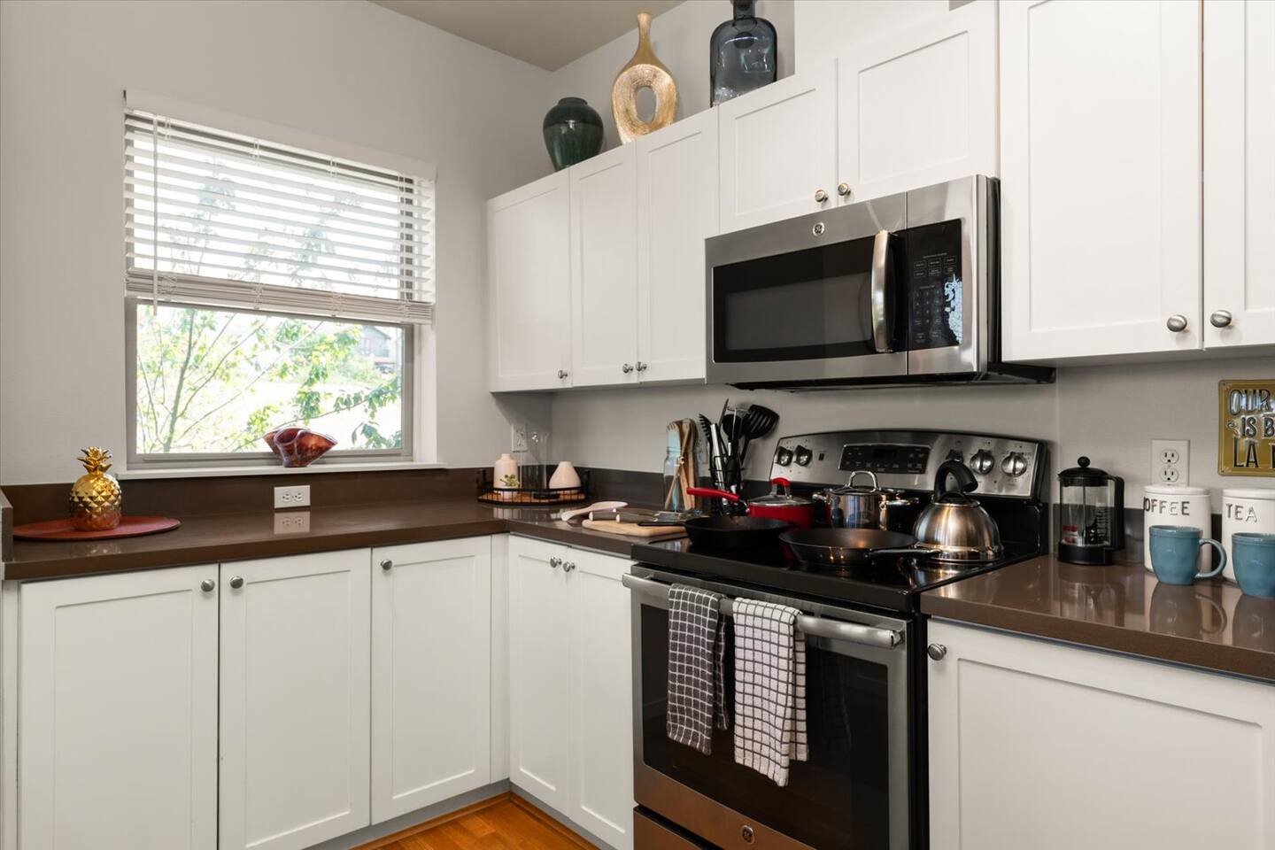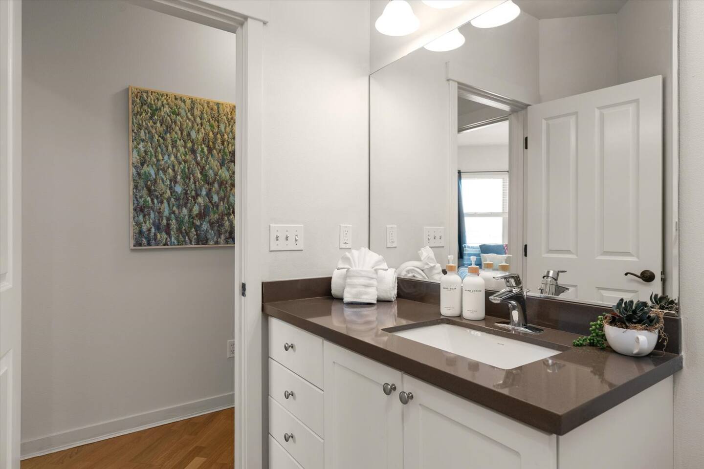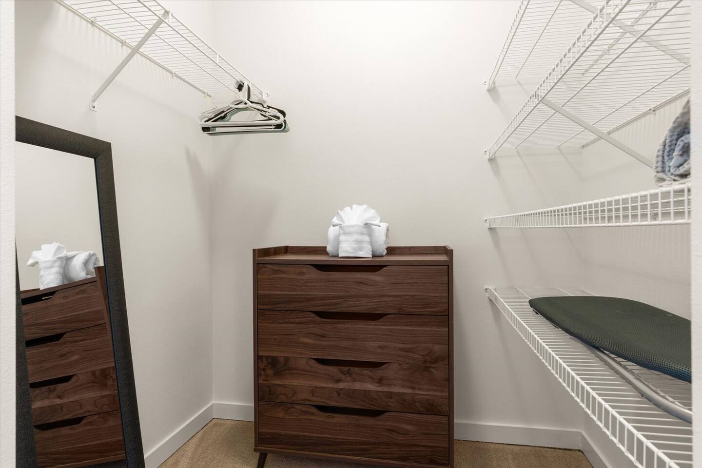 Step into this boho inspired, 1100 square foot (with 300 square foot private rooftop patio!) two-bedroom haven and be greeted by polished hardwood floors, elegant furniture, live plants, quartz countertops, and sleek stainless steel appliances. Each bedroom comes with a foldable work desk and chair in case you need privacy amongst a larger travel group while working from home. Morning light streaming through the east facing windows will not disappoint as you start your day with free coffee or tea. The wifi is super fast, and with the convenience of a large washer and dryer in unit you'll feel right at home here in the Emerald City.