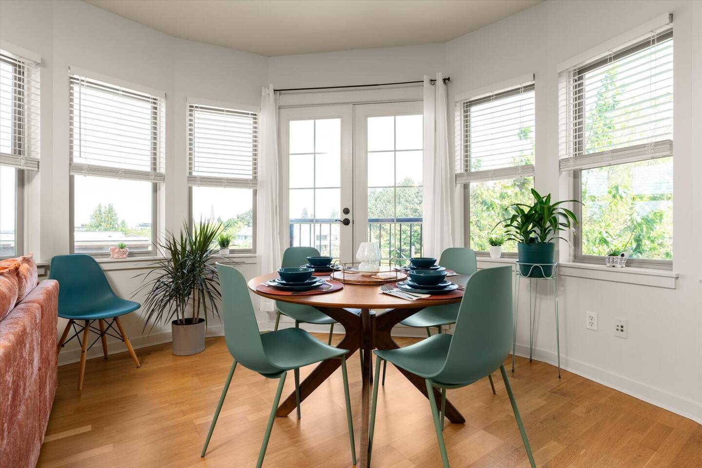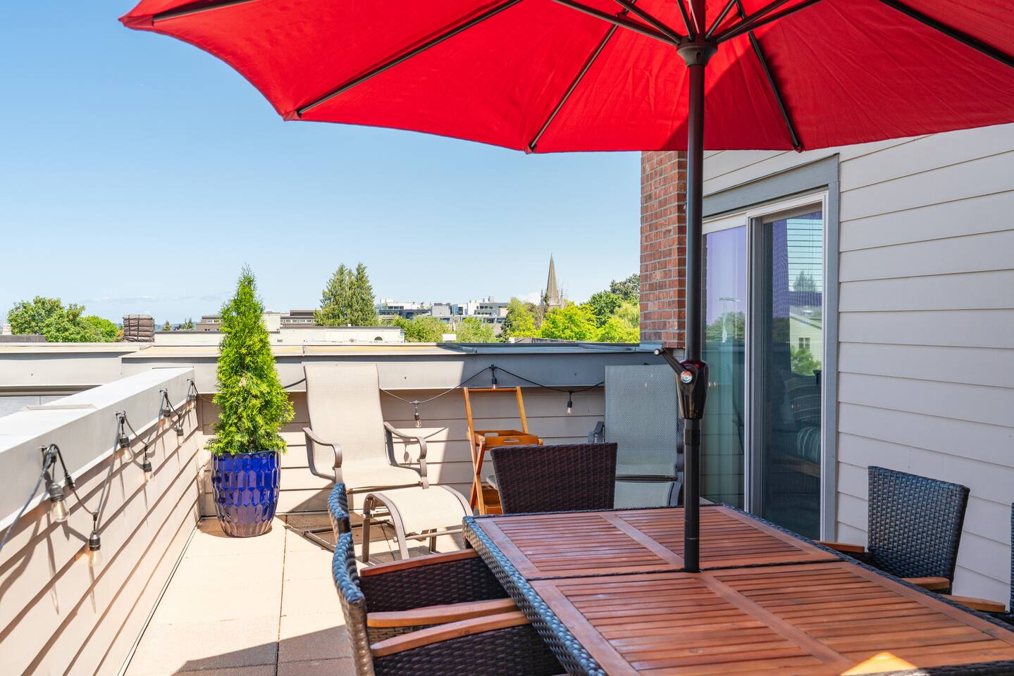 Stay in the heart of Upper Queen Anne in this stylish 2 bed, 2 full bath apartment featuring comfortable King beds, a pullout couch, french doors in the dining area, fully stocked kitchen, and a massive patio with BBQ and seating for your crew! Boasting a 95 walk score, this top floor, corner apartment is full of natural light and all the amenities you'd ever want in a home!