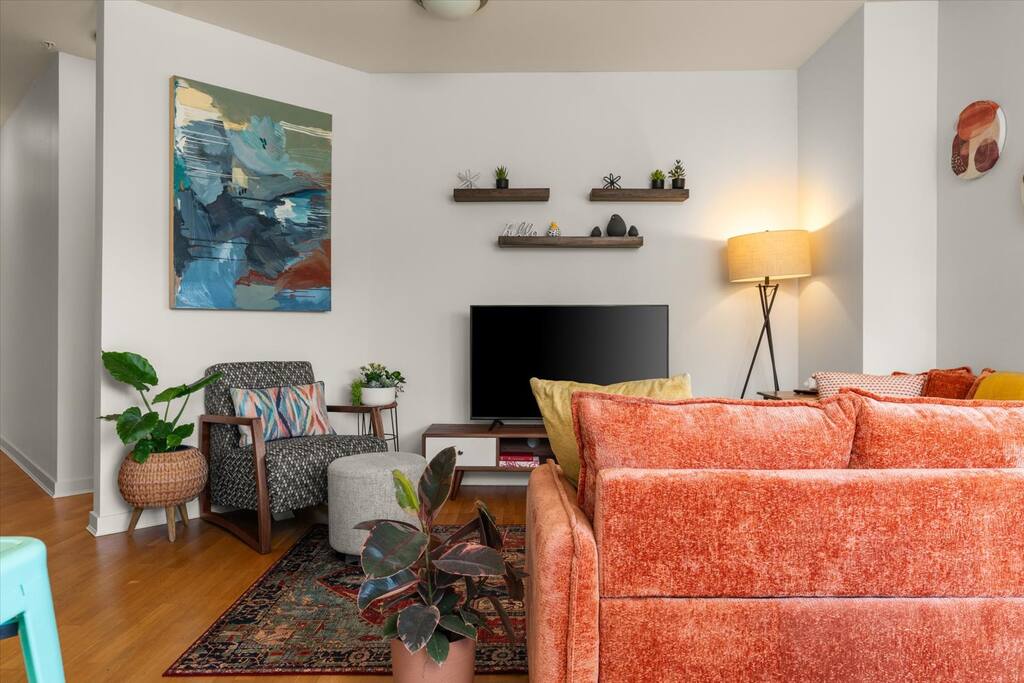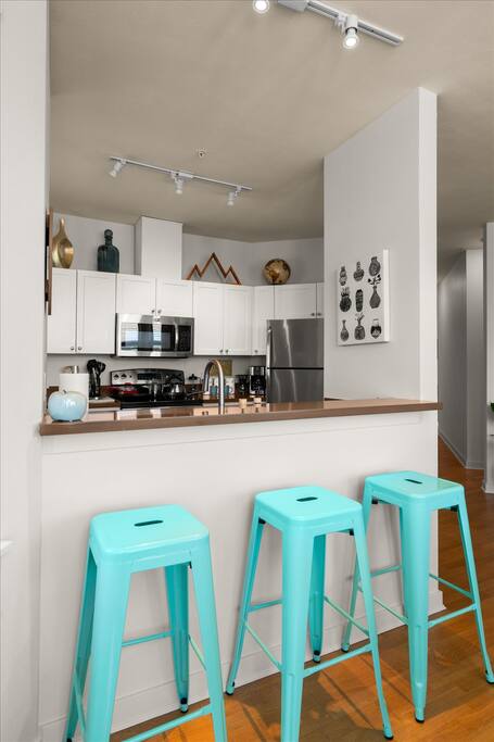 **Note this listing is for a single bedroom with en-suite bathroom in a two-bedroom apartment. The other bedroom and bathroom may be booked by separate travelers and the common spaces are shared. I have another listing for renting out the entire apartment if that suits your travel needs- see my profile for the link!** Step into this boho inspired haven and be greeted by polished hardwood floors, elegant furniture, live plants, quartz countertops, and sleek stainless steel appliances. Each bedroom comes with a foldable work desk and chair in case you need privacy while working from home. Morning light streaming through the east facing windows will not disappoint as you start your day with free coffee or tea. The wifi is super fast, and with the convenience of a large washer and dryer in unit you'll feel right at home here in the Emerald City.