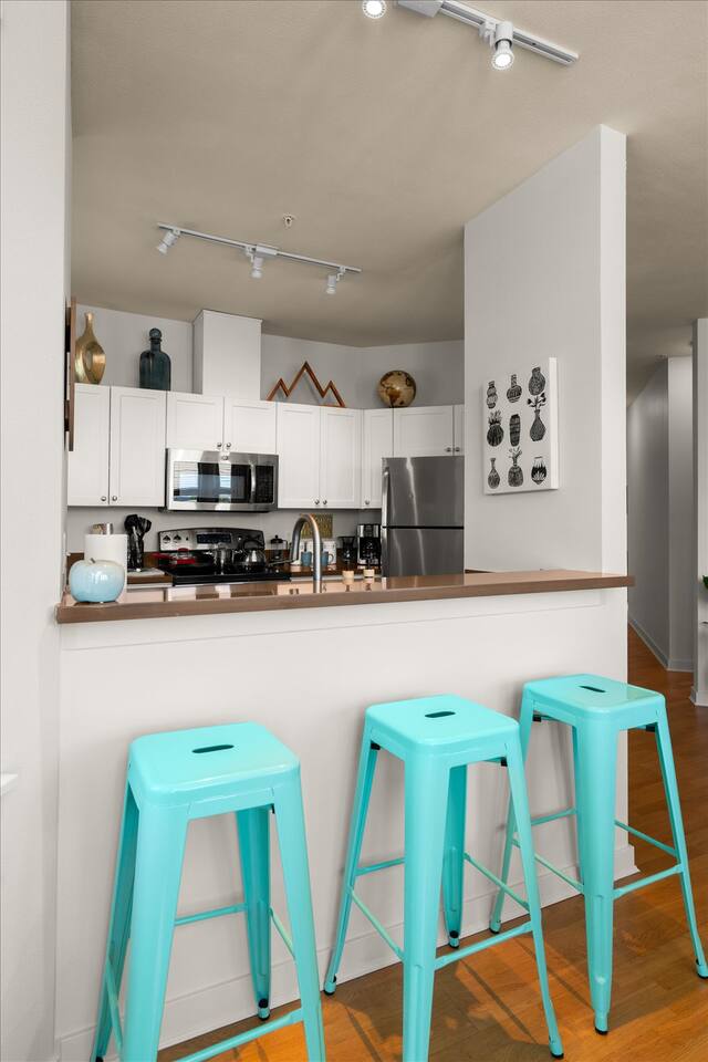 Make yourself at home in this fully equipped apartment, where every detail is designed for your comfort and enjoyment. The bedroom, private bathroom, and common areas are yours to enjoy. As an added bonus, take advantage of the rooftop patio (accessible from the apartment) complete with a propane BBQ, outdoor table with umbrella, and sun chairs. There is also a large, shared patio space (accessible on the main floor in the building) featuring additional seating and BBQ.