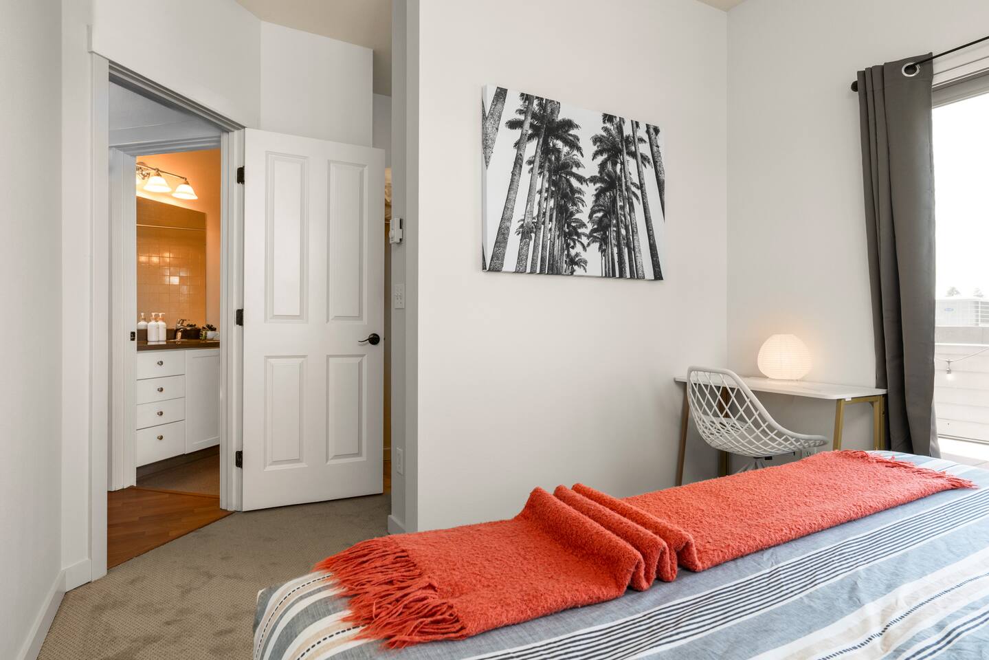 **Note this listing is for a single bedroom with a private bathroom in a two-bedroom apartment. The other bedroom and bathroom may be booked by separate travelers and the common spaces are shared. I have another listing for renting out the entire apartment if that suits your travel needs- see my profile for the link!** Step into this boho inspired haven and be greeted by polished hardwood floors, elegant furniture, live plants, quartz countertops, and sleek stainless steel appliances. Each bedroom comes with a foldable work desk and chair in case you need privacy while working from home. Morning light streaming through the east facing windows will not disappoint as you start your day with free coffee or tea. The wifi is super fast, and with the convenience of a large washer and dryer in unit you'll feel right at home here in the Emerald City.